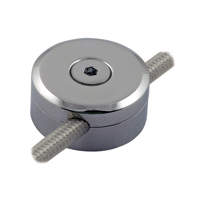 CHROMED STEEL; TWO-PIECE DESIGN; ATTCHES TO BOTTOM OF FORK STEM WITH 1/4-20 THREADED ALLENHEAD BOLT; WILLL GUIDE THE BRAKE LINE Fits: ALL H-D WITH 1/4-20 THREADED FORK STEM Units: 1