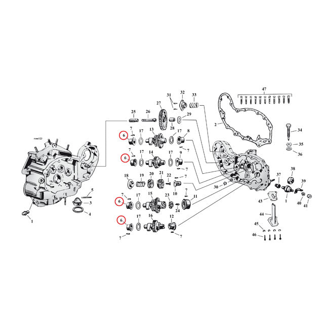 Fits: 37-73 45" SV(NU)(IN CRANKCASE, 4 USED); K-MODEL XL 1952-1956 BUSHING CAM GEAR Units: 1