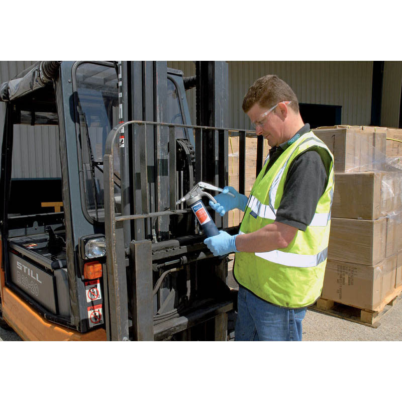 Pistola para engrasar para uso con cartuchos estándar o grasa a granel. Utilización con una sola mano.