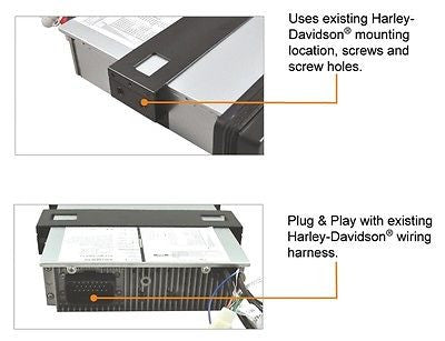 Uses the existing Harley-Davidson factory stereo mounting bracket and wiring connections – simply plug and play!