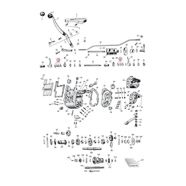 Compatible con:36-86 4-speed Big Twin; 35-73 45" Flathead, Servi-Car